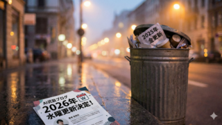 AI武装 あけまして、更新曜日変更です──2026年は水曜日ブログ 2026年は水曜更新へ!Geminiのバグを小説化した『記憶のゴミ箱』制作秘話と、エンタメに「シリアス」を混ぜ込む作家の野望について。 2026.01.07 AI武装作品深掘り